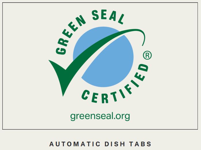 The Green Seal Certification is a label that shows that our Automatic Dish Tabs have met strict environmental standards. This certification can be applied to a wide range of products, from cleaning supplies and paints to hotels and restaurants. To earn the Green Seal, our Dish Tabs must be proven to reduce pollution, use fewer harmful chemicals, save energy and water, and minimize waste. It helps consumers make more sustainable choices, knowing that our Dish Tabs are not only effective but also better for the environment