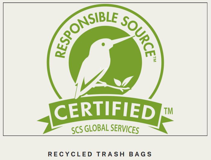 The SCS Recycled Content Certification is a trusted label that proves our Recycled Trash Bags are made with genuine recycled materials. It verifies both the type (post-consumer or pre-consumer) and percentage of recycled content through independent testing by SCS Global Services. It helps shoppers know they’re choosing a Recycled Trash Bag that certifiably reduces waste, saves resources, and are honestly eco-friendly—not just greenwashed.